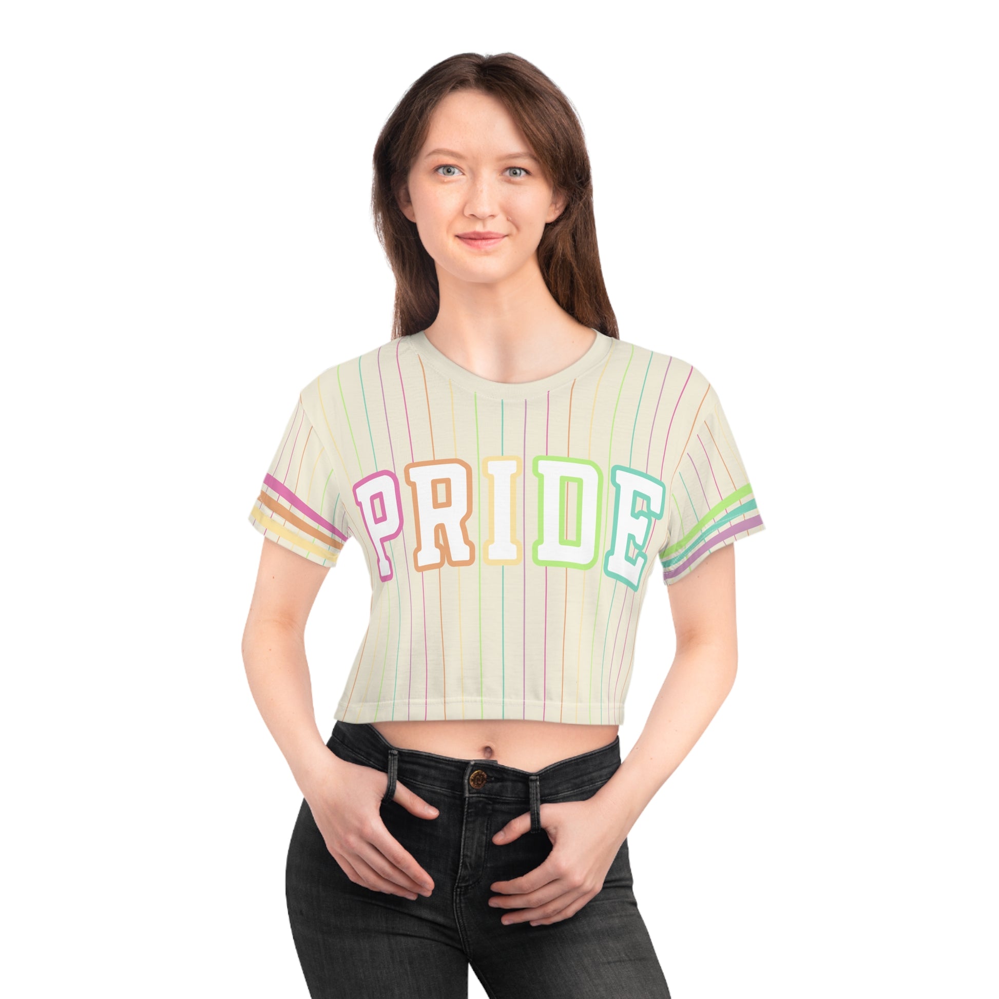 This personalized crop top has both comfort and style in spades. Add whimsical patterns, feel-good designs and create a unique AOP crop tee that’s perfect for everyday wear. Made 100% with silky soft polyester that is both lightweight and breathable.